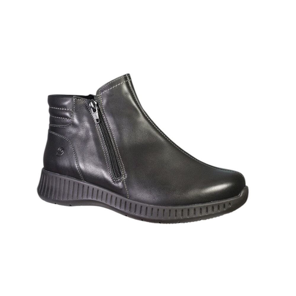 Svart boots från Mockasin tillverkad i skinn. Dragkedja på sidorna av skon. Yttersula i gummi för bra komfort och grepp. Skon är extra bred i lästen och passar dig med en bred fot.