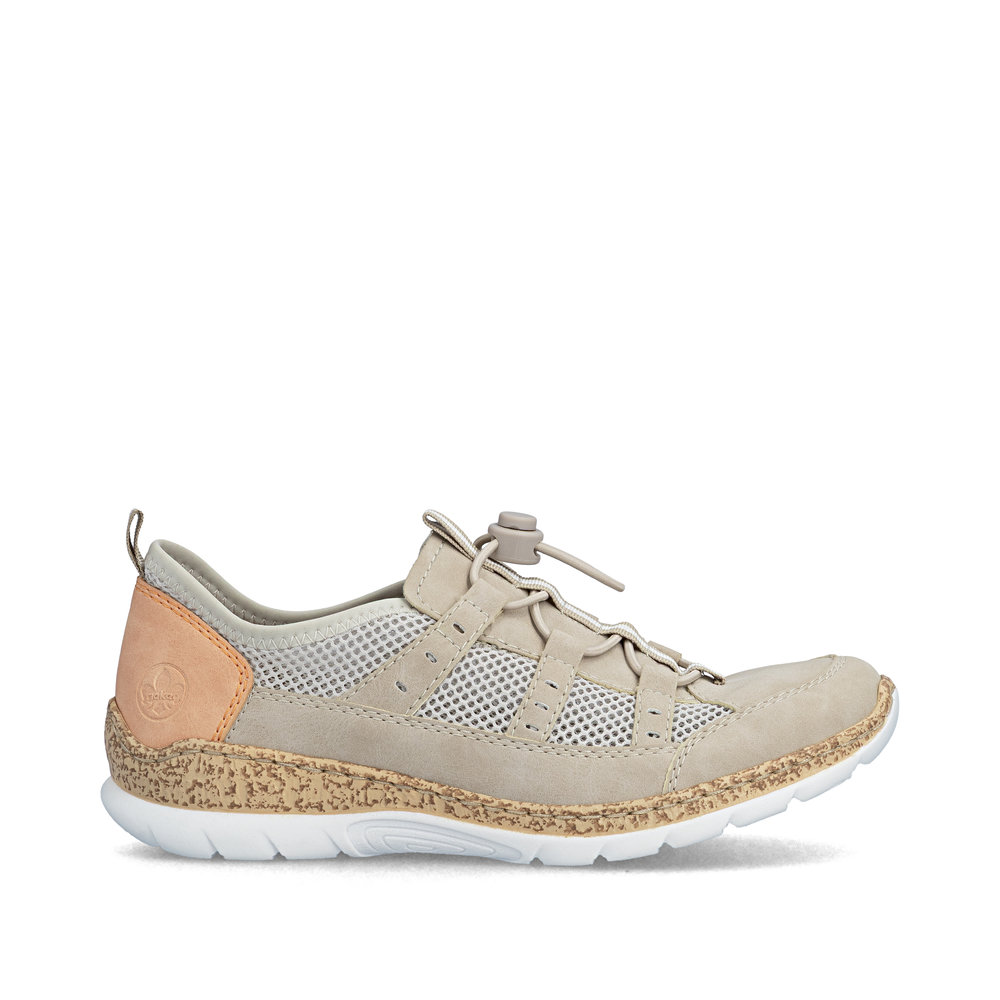 Luftig lågsko från Rieker tillverkad i konstskinn och syntet. Innersulan är utrustad med en memosoft sula vilket ger en mjuk och behaglig känsla hela dagen. Gummiband för justering för rätt passform.