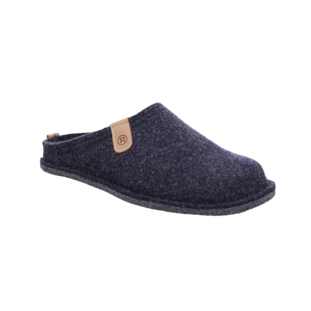 Mörkblå toffel i textil från Rohde. En mjuk och bekväm modell som ger en följsam passform. Fodret i mjuk textil och innersulan i textil är vadderade för extra komfort och skön känsla under foten. Uttagbar innesula.