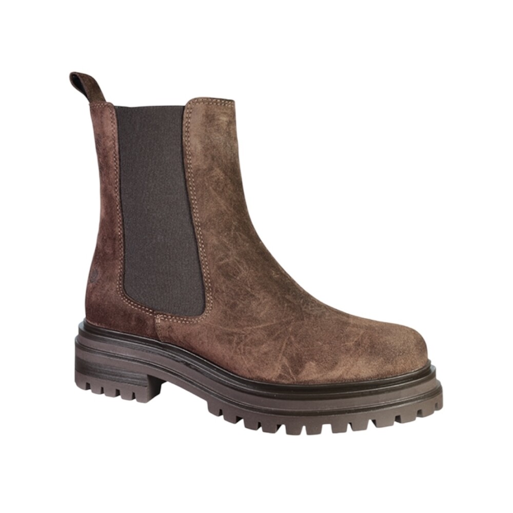 En tuff boots från Rosa Negra tillverkad i mocka. Resårband på utsidan av skon samt dragkedja på insidan. Yttersula i mönstrad gummi för bra grepp.