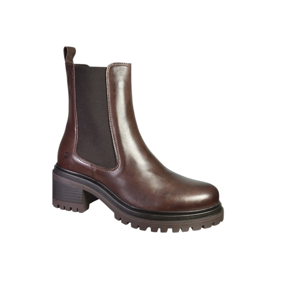 Mörkbrun stövlett från Rosa Negra tillverkade i mjukt skinn. Dragkedja på insidan av skon för enkel på- och avtagning. Klackhöjd 5 cm.