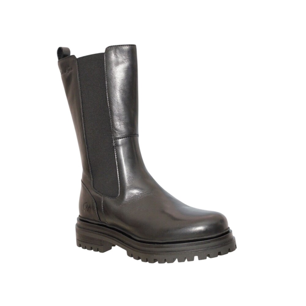Svart chelseaboots i skinn från Rosa Negra. Dragkedja på insidan av skon. Grov yttersula i gummi. Bootsen har ett högt skaft vilket passar perfekt till det mesta.