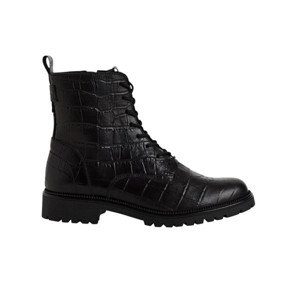 Svart snörkänga från Tamaris tillverkad i svart krocko skinn. Dragkedja på insidan av skon. En snygg nyhet!