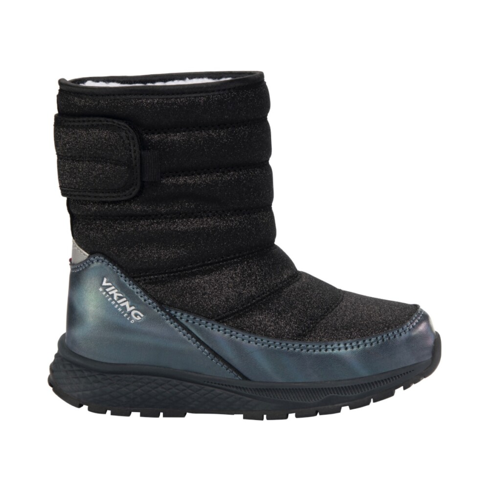 Mörkblå glittrig vinterkänga till dom små från Viking. En snowjoggermodell med ett kardborreband upptill vid sidan för enkel insteg. Varmfodrad och perfekt för kalla dagar i skolan!